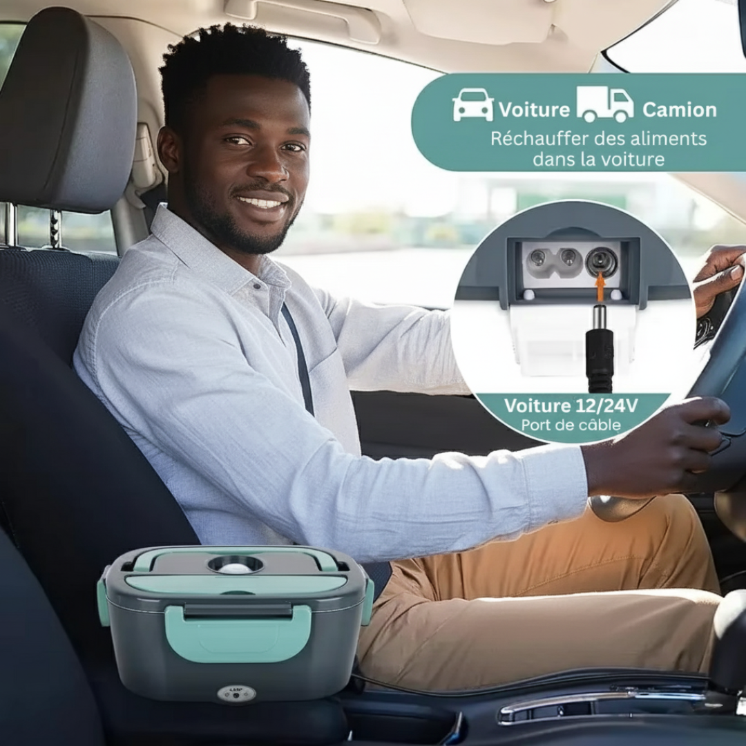 Vous travaillez sur un chantier, au bureau, dans un taxi ou vous êtes souvent en déplacement ? Cette lunch box électrique est la solution parfaite pour savourer vos plats chauds faits maison, sans micro-ondes !